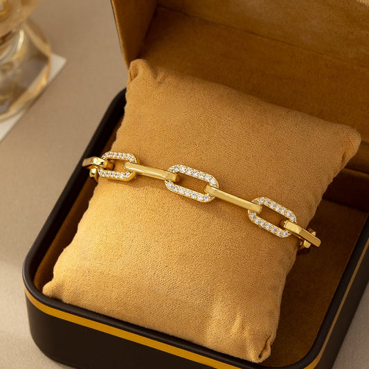 Gilded Links Set – Diamond Accent Bracelet & Earrings