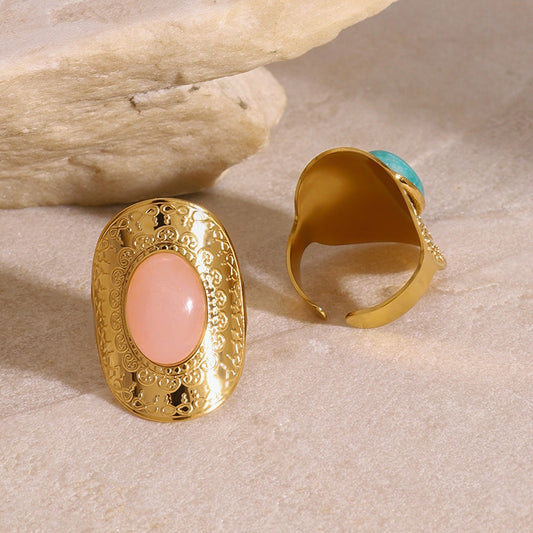 Aurora Oval Gemstone Statement Ring - 18K Gold